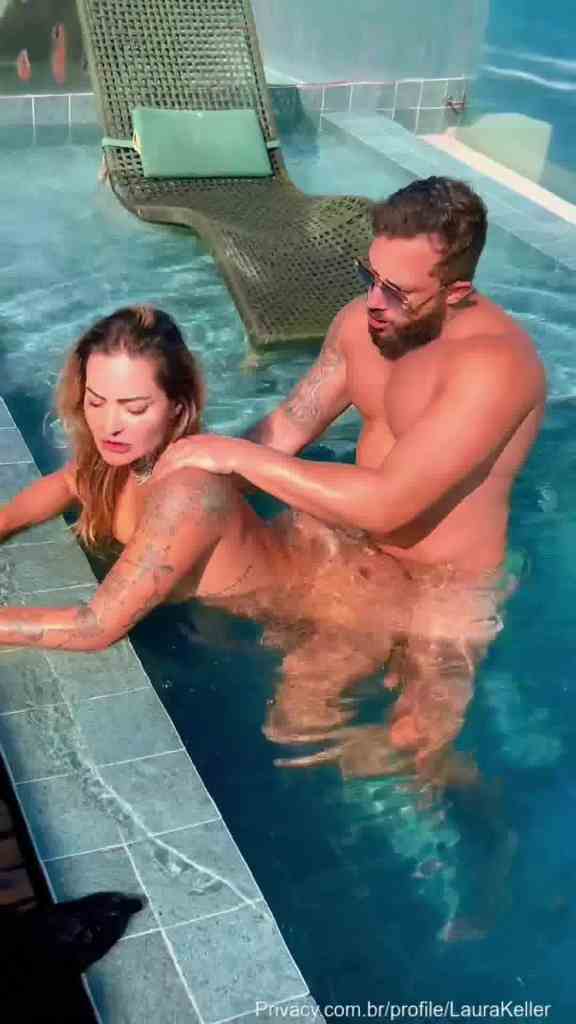 Laura Keller metendo na piscina